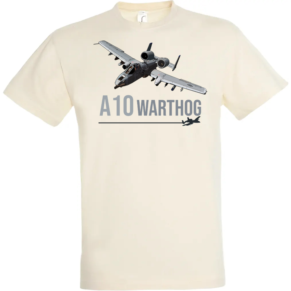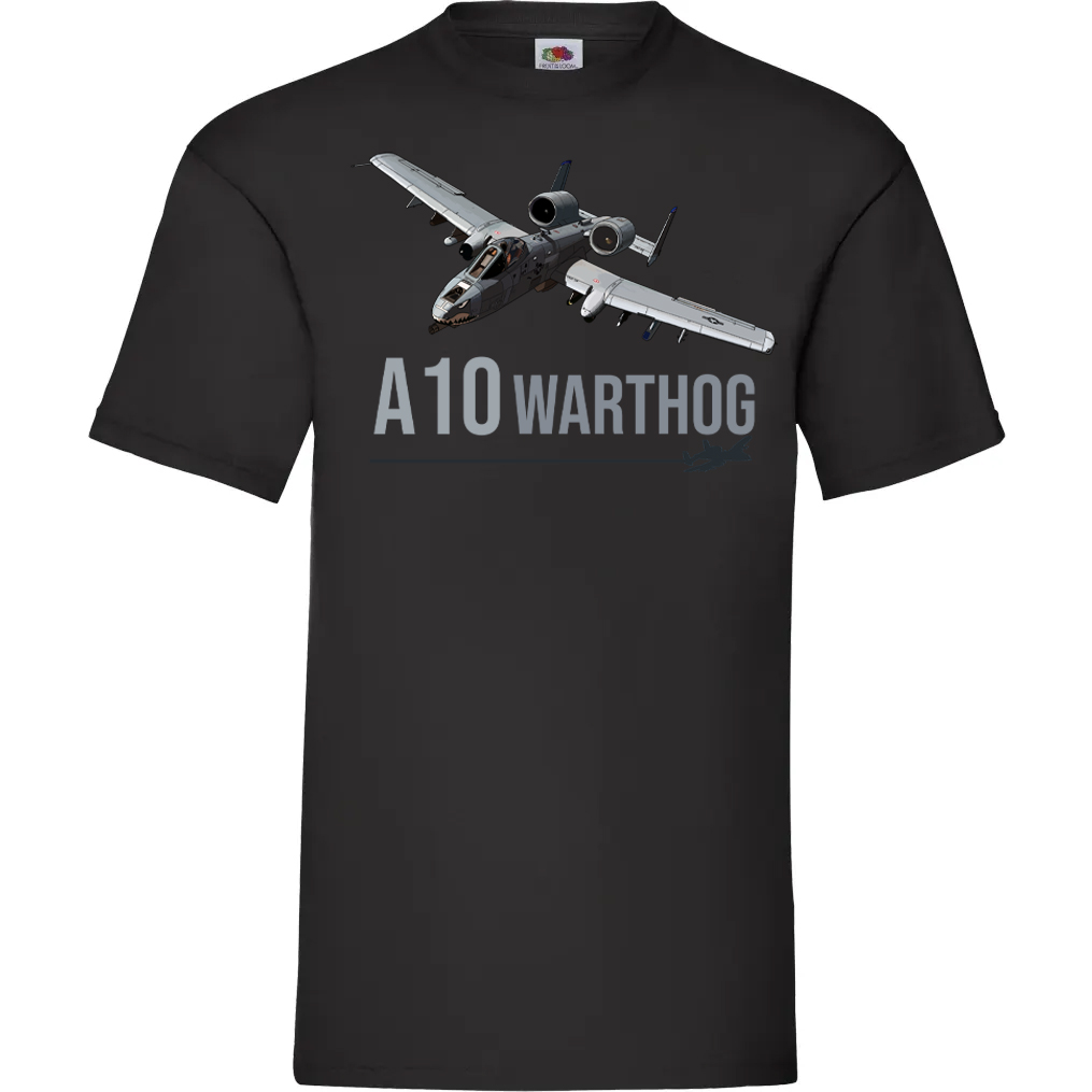 T-shirt A10 Warthog avec illustration originale. Un hommage au célèbre avion d’attaque au sol de l’US Air Force, conçu pour les passionnés d’aviation.