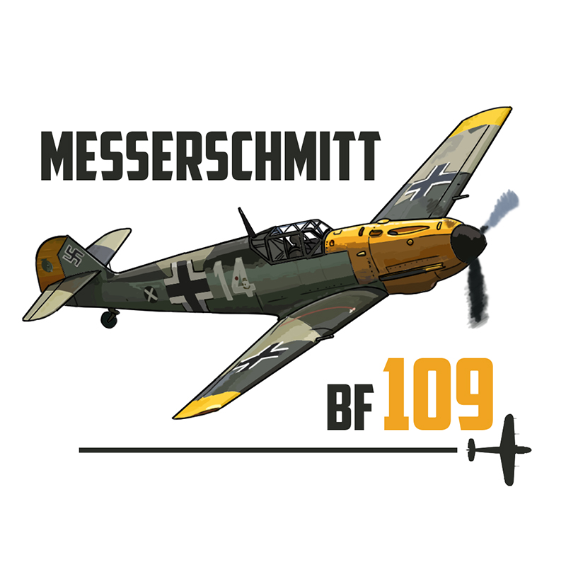 T-shirt BF 109 avec illustration originale. Un hommage au célèbre chasseur allemand de la Seconde Guerre mondiale, conçu pour les passionnés d’aviation et de warbirds.