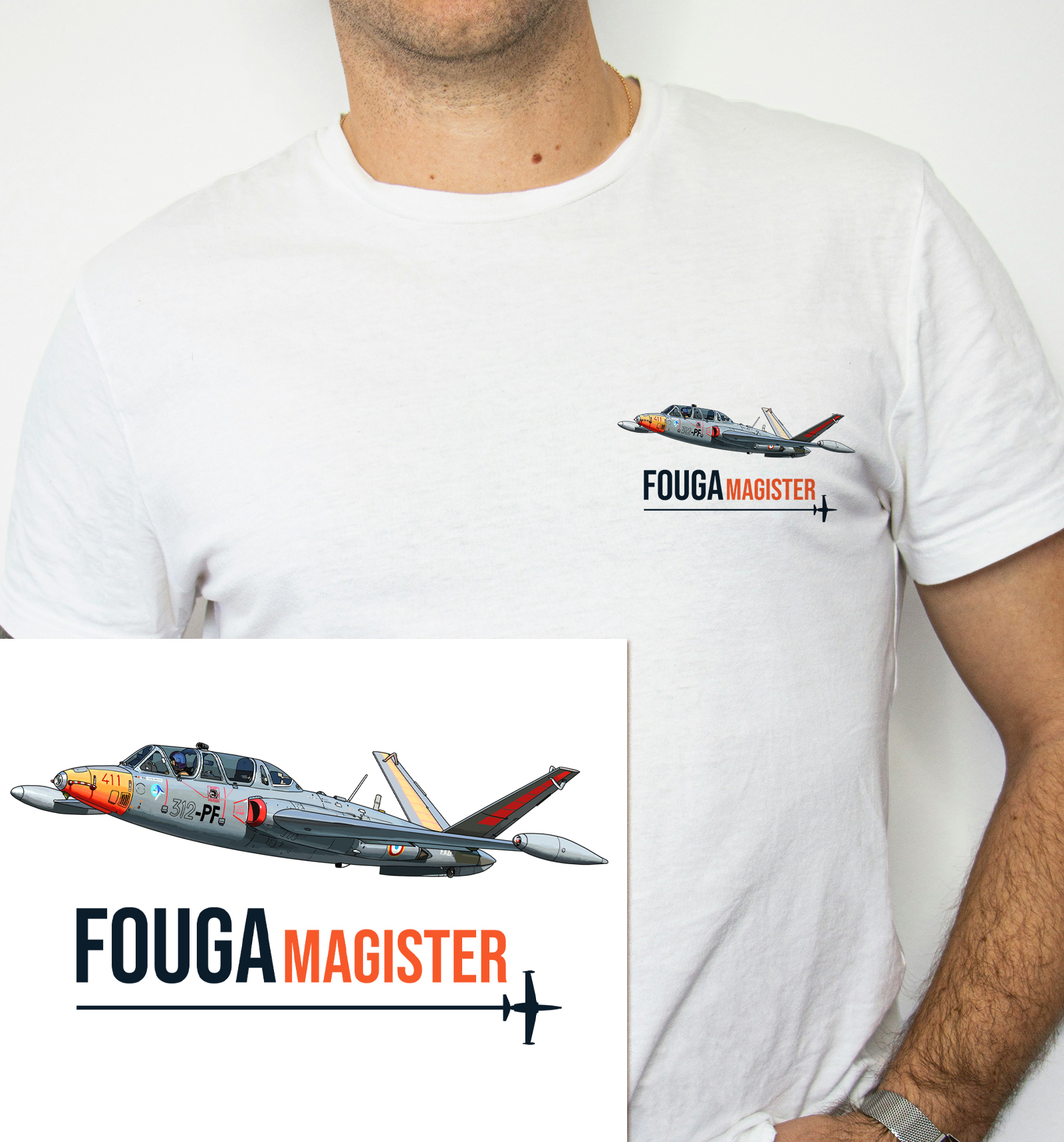 T-shirt Mirage Fouga Magister avec illustration originale.